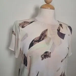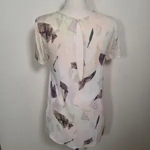 Aritzia Abstract Print Silk Low Key Hole Back Short Sleeve Hi/lo Tunic SZ S