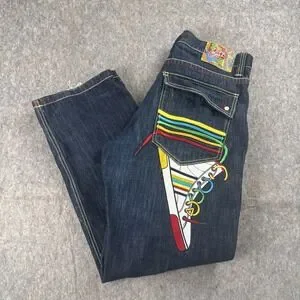 Vtg COOGI Jeans Mens sz 38x34 Embroidered Sneaker Shoes Rainbow Blue Denim Y2K