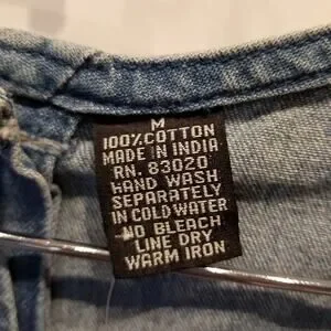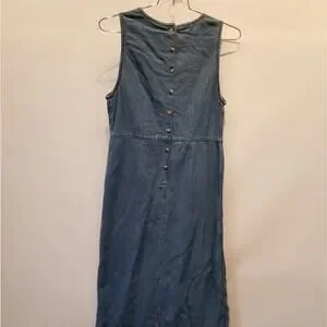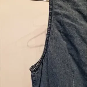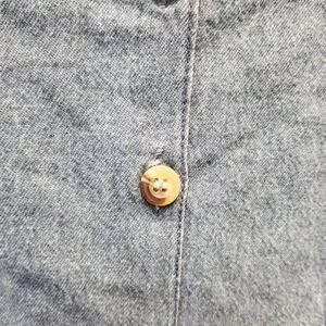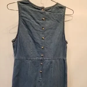 Vintage 90's NEW Denim Dress Embroidered Roses Floral Faux Wrap Button Size M