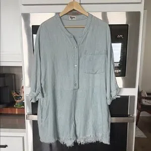 Women’s size large. No tag on it/ measurement’s see pictures ( 22 pit to pit and 31 top to bottom. Like new only worn once. Super cute throw on outfit or beach cover up. This is a romper and suppose to be loose/ no belt.