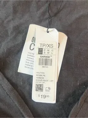 Garage Palm Valley Los Angeles Tie Front Crop Tee Black Women’s XS NWT