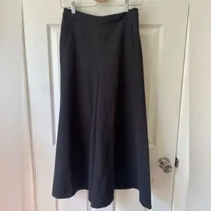 Elegant black flare capris that make a beautiful A line sihlouette. These are a professional office style pant that has a little stretch in them!