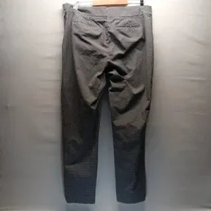 This item is in excellent pre-owned condition with no holes or stains and very minimal signs of wear. Please see all photos as this is the exact garment you will receive. FlatFront, rear pockets and side zip closure. 97% cotton/3% spandex, machine wash cold. Measurements taken with item laying flat- waist is 18", length from high point of waist to bottom hem is 38", inseam is 27"