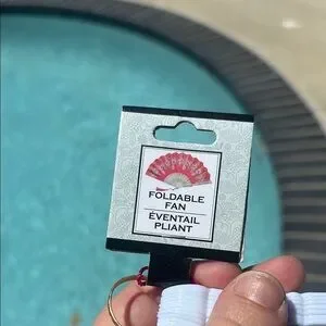 Add a touch of elegance to your ensemble with this beautiful pink floral hand fan. Perfect for any occasion. New and unused. Plastic.