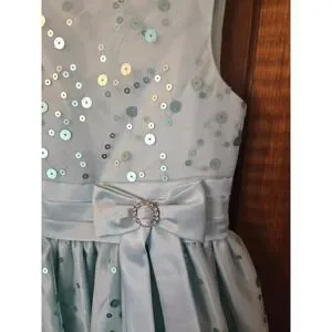 AMERICAN PRINCESS Girls Aqua Blue Sequin Bow Formal Party Dress Size 8