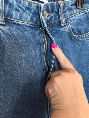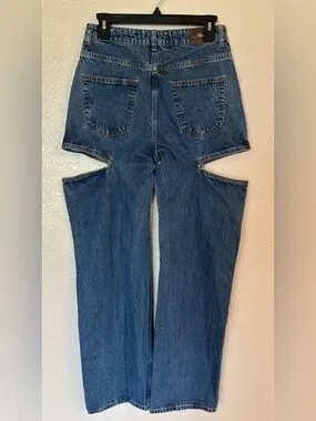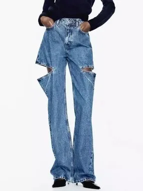ZARA 100% Cotton Mid Waist Straight Leg Cut Out Jeans (no chain)