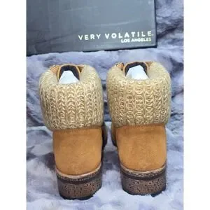 NWB Very Volatile Pullman Tan Suede Knit Collar Lace Up Hiker Boots PVV802 SZ 8