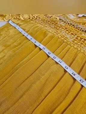 Indigo Rose Mustard Yellow Boho Crochet Lace Mini Dress | Bell Sleeve Bohemian M