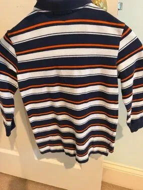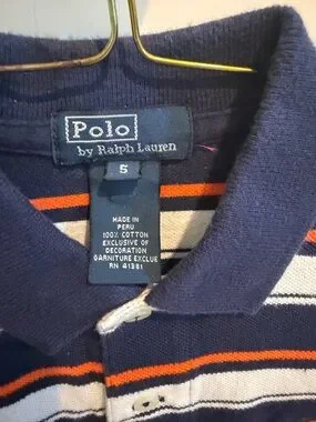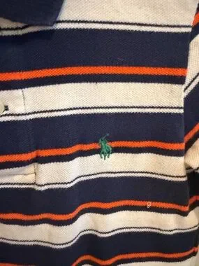 Kids Ralph Lauren size 5 Navy, White & Orange Striped Long-Sleeve Polo