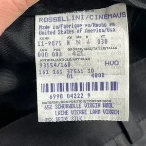 Hugo Boss Rossellini Cinemaus dress pants feature a luxurious virgin wool and silk blend with a subtle vertical stripe pattern. These trousers are designed with a classic pleated front, cuffed hems, and a sophisticated sheen that elevates any formal or business ensemble. Crafted in the USA, they offer a refined silhouette with a zip fly and hook-and-bar closure, perfect for professional settings or special occasions.