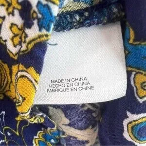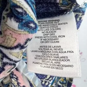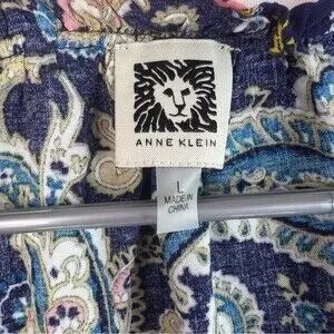 Anne Klein shirt long sleeve Navy Paisley Blouse with Coral and Teal Accents
