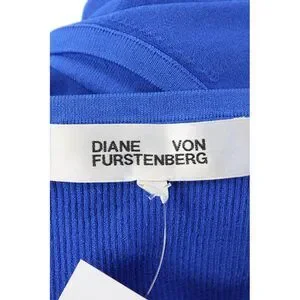 Diane Von Furstenberg Womens Ribbed Back Scoop Neck Long Sleeve Top Blue Small