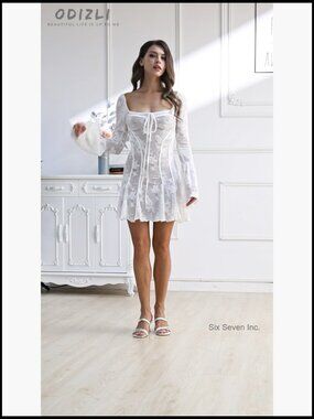 A captivating Y2K-inspired dress featuring a sweetheart neckline and long bell sleeves. Designed with intricate lace and a flattering A-line silhouette, it's perfect for making a statement at any special occasion.