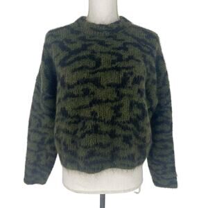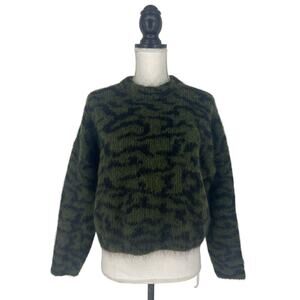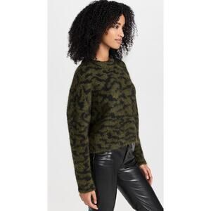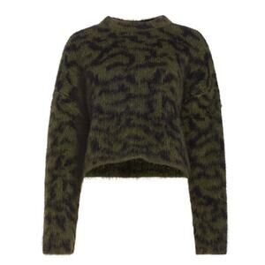 Add an artful touch to your knitwear collection with this Frame Abstract Jacquard Crew Neck Sweater. Crafted from a luxurious mid-weight brushed knit, this soft and cozy cropped sweater features a bold abstract jacquard pattern, perfect for making a modern statement. The relaxed silhouette is finished with ribbed trim at the crew neckline and long sleeves for a timeless touch. With its mohair and wool blend, this elevated knit pairs effortlessly with high-rise denim or trousers for a chic, cool-weather look.