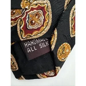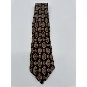 Les Montreux Mens Tie Black Brown Gold Hand Made In Paris All Silk 57"