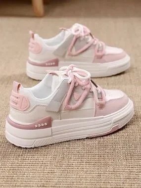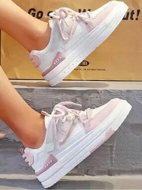 Stylish women's low-top sneakers in soft pink and white. Cushioned insole for all-day comfort. Durable rubber sole with secure lace-up closure. Versatile design that pairs easily with casual outfits.