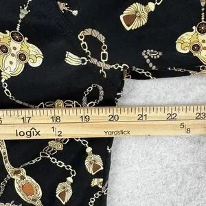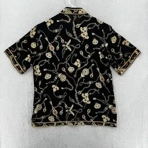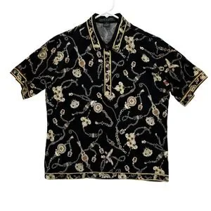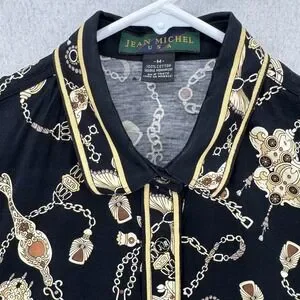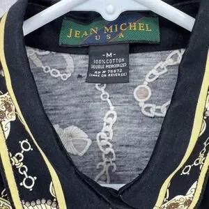 Jean Michel Polo Shirt Womens Medium Black Gold Chain Print Vintage 90s Designer