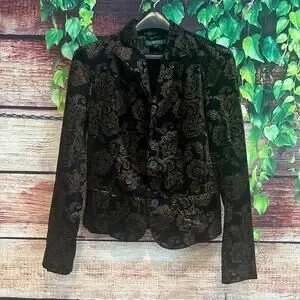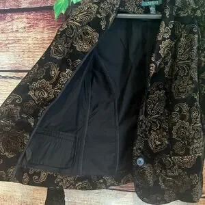 Lauren Ralph Lauren Stretch Velvet Floral Blazer Jacket Black Gold $199 NYE