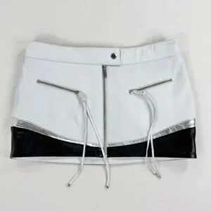 Retrofete Womens Sian Leather Zipper Mini Skirt Medium White Black Edgy