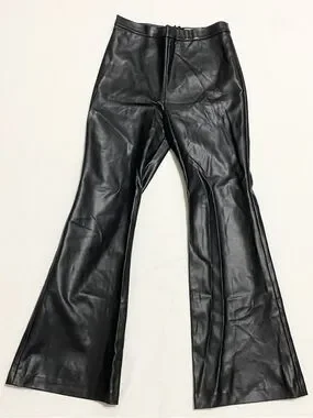 Anthropologie Hutch Faux Leather Pleather Black Flared Pants