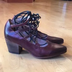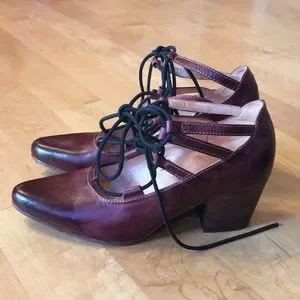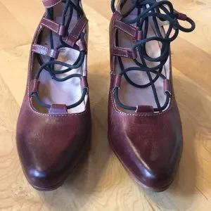 BED | STU Burgundy Leather Lace-Up Block Heel Pumps
