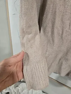 Barefoot Dreams• Cozychic Lite Lounge Open-Front Cardigan - Light Mauve. Sz S, 29in long, 20in pit to pit. Soft open-front cardigan in a muted mauve shade. Draped waterfall front with relaxed silhouette. Cozy plush knit for comfortable layering. Ribbed cuff and hem details add subtle texture. Has some minor pilling as pictured. Very comfy for lounging. Made of nylon and rayon