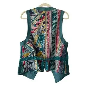 Vintage 80s Howard Wolf Colorful Vest with Embroidered Details