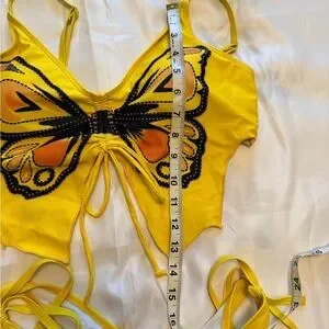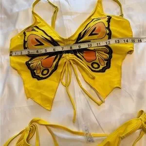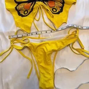 Letting go of this gorgeous butterfly bikini set because it deserves a sunny vacation ✨ Vibrant yellow, adjustable ties, and super flattering fit. Perfect for beach days, pool parties, and festival vibes. Excellent condition.