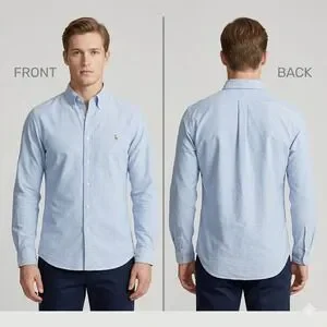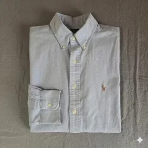 Ralph Lauren Blake button-down shirt in a classic blue oxford cotton. This long-sleeve essential features a button-down collar, signature embroidered pony logo on the chest, and a relaxed fit. Crafted from breathable 100% cotton, it offers a timeless look suitable for both casual and professional settings. The back includes a box pleat for added comfort and movement.