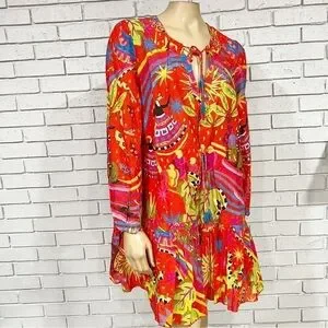Crafted of textured cotton, Farm Rio's Magic Forest minidress showcases an illustrative tropical print.