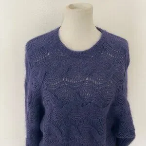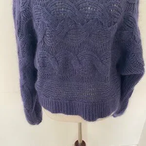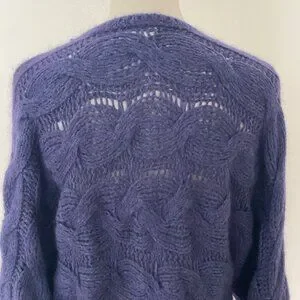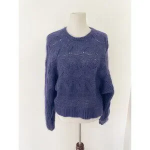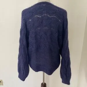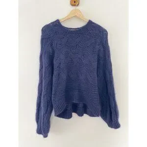 Farm Rio Cable Knit Sweater Wool Blend Blue