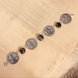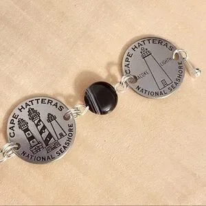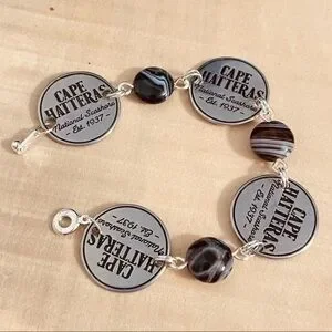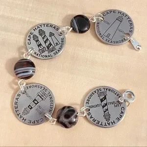π’π Handmade Black Agate & Mixed Metal Cape Hatteras Lighthouse Statement Bracelet 7.5β