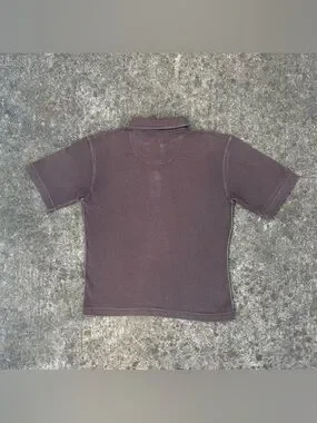 This polo features a rich brown colorway with subtle graphic detailing that gives it an effortlessly cool, worn-in vibe. The classic collared neckline with button placket adds a preppy touch, while the Y2K-inspired design keeps it rooted in retro streetwear culture. Perfect for anyone into skatecore, surf style, or grunge fashion, this shirt delivers versatility and attitude in one piece.