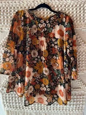 Natural Life Cotton Tunic Orange Floral Size Small/Medium