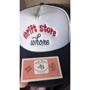 Real embroidery red and navy thrift store chic . Resellers hat, sourcing hat cap This NEW Trendy Thrift Store Hat is a stylish and versatile accessory suitable for both men and women. The adjustable size ensures a comfortable fit for any head shape, while the beige color and baseball cap style give it a trendy and on-trend look. Made from breathable mesh fabric, this hat is perfect for keeping cool and adding a fashionable touch to any outfit. Whether you're running errands or heading out for a casual day out, this hat is a must-have accessory.