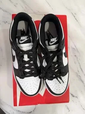 Classic Panda Dunks in the essential black and white colorway. Women's size 7.5 / Men's size 6. Style code DD1503-101. Crisp leather uppers and clean white midsoles. Includes the original red Nike box. Never worn and ready to ship.
