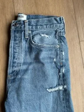 AGOLDE 90s Mid Rise Loose Fit Jean Blue Distressed Size 25