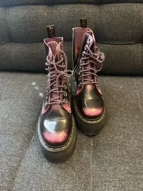 Dr. Martens Women's Metallic Burgundy Black Platform Combat Boots