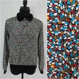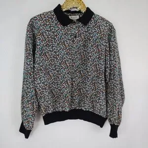 Vintage 80s Notations Womens Banded Multicolored Floral Top size 10 Art Teacher