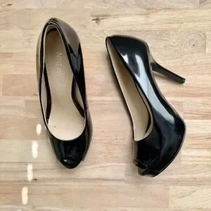 Black patent leather peeptoe heel size 6 Nine West