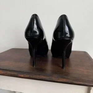 Black patent leather peeptoe heel