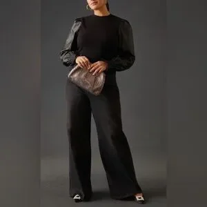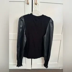 Dolan Anthropologie Mixed Media Puff Sleeve Top in Black Leather Sleeve Small