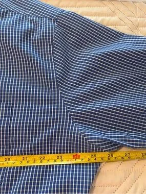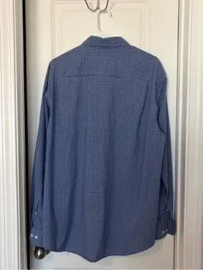 Men's Long-Sleeve Blue Check Dress Shirt Size XL/TG/XG 17-17 1/2