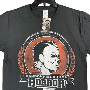 halloween shirt, michael myers shirt, haddonfield high, horror graphic shirt, movie merch, nerd block exclusive, horror film tee, cult classic apparel, spooky season shirt, black graphic shirt, collector shirt, retro horror fashion, softstyle cotton, halloween fan gear, 2016 release, slasher film merch, limited edition shirt, movie night outfit, horror fan apparel, vintage