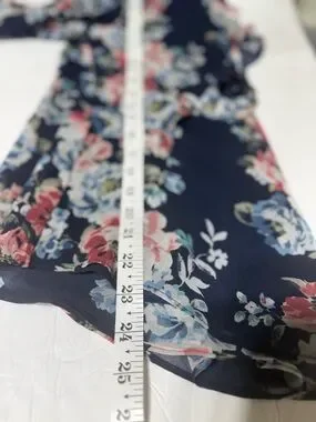 White House Black Market Navy Floral Tie-Front Blouse Size 4
