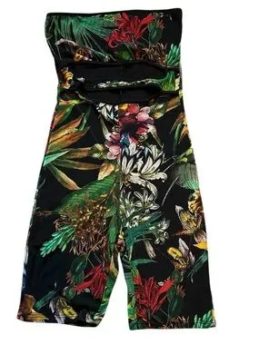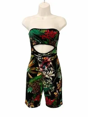 Fashion Nova Womens S Black Tropical Floral Strapless Cutout Romper Shorts Lined