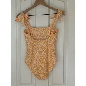 Citrine | One Piece Swimsuit Small Yellow Floral Tie Shoulder Square Neck Beach