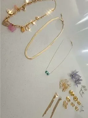 fashion jewelry, not real gold or stones, great deal for 15 pieces of jewelry! most of it was barely worn if worn ever.