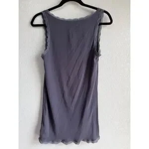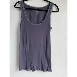 American Eagle Outfitters Gray Ribbed Lace Trim Tank Top Women L Large Logo