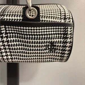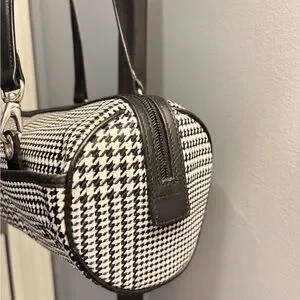 Ralph Lauren Black White Houndstooth Barrel Baguette Shoulder Bag | 11x5x3.5"